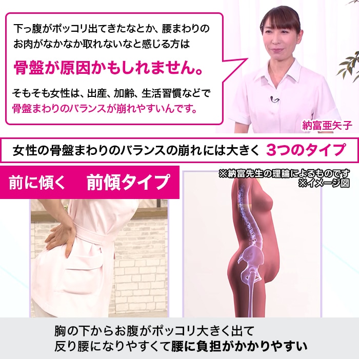 そもそも女性は、出産、加齢、生活習慣などで骨盤まわりのバランスが崩れやすいんです。」